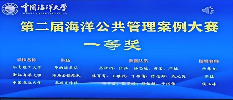10月26日,第二届海洋公共管理案例大赛决赛在中国海洋大学圆满落幕。浙江海洋大学经济与管理学院选派的两支参赛队伍表现优异,在与厦门大学、中国农业大学、中国政法大学等多所985高校代表队的激烈角逐中脱颖而出,斩获一等奖1项、二等奖1项,同时1名同学获评全场“最有价值队员”。这是浙江海洋大学继去年获得首届海洋公共管理案例大赛一等奖后,再次蝉联该奖项。