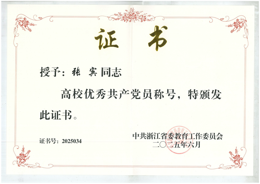 张宾始终将党建引领作为事业发展的核心动力,2025年获评“浙江省优秀共产党员”荣誉称号。他参与打造“海岛共同富裕”、“弘扬蚂蚁岛精神”等系列特色党建活动,推动学院党委成功获评“全省党建工作标杆院系”。以“双带头人”标准领衔支部建设,其负责的党支部入选省级高校“双带头人”教师党支部书记工作室及“强国行”专项行动团队,联系的海洋生物医药党支部获评“全国样板党支部”。他积极构建“校企党建共同体”、“学研党建共同体”,与浙江兴业集团有限公司等多家单位深度联建,“破解水产品保鲜难题”案例入选全省高校党建联建典型,有力推动了党建与业务同频共振、深度融合,为学科育人与创新发展注入了强劲的“红色动能”。