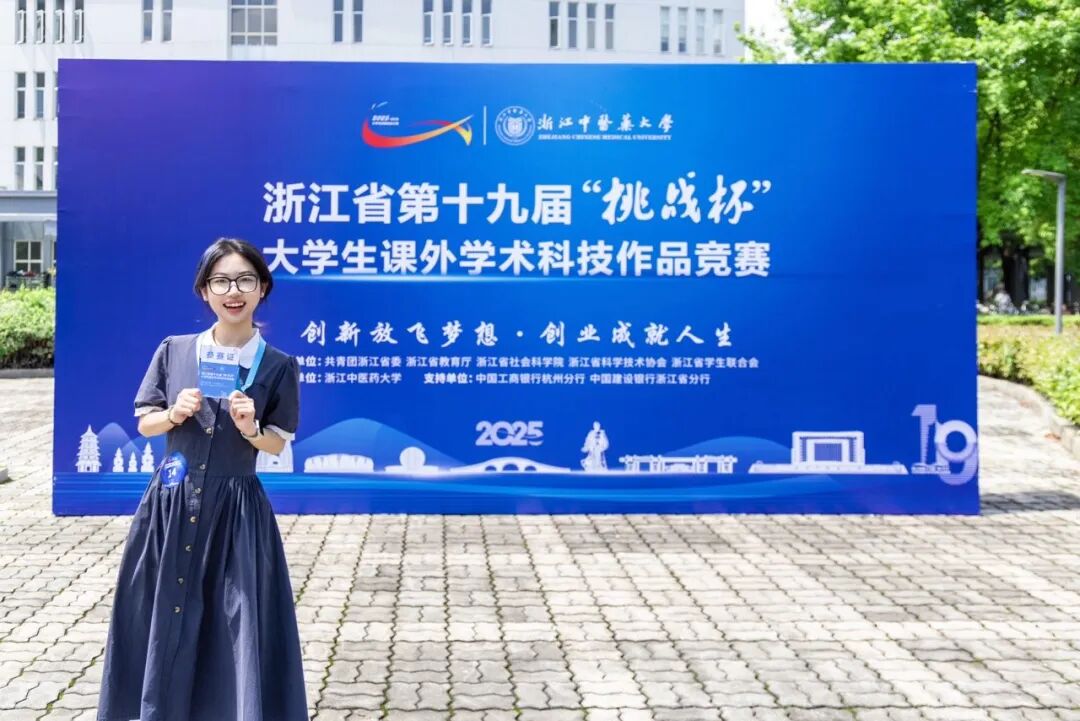 她笑称,自己是“被迫点亮了项目管理技能树”。2024年盛夏,陈素娴以“乡村文博”实践团负责人的身份,带领27人团队完成了关于乡村博物馆的深度调研。后续以该次实践为基底,她率队参与了浙江省“挑战杯”大学生课外学术科技作品竞赛,历经11稿方案修订,最终捧得金奖,实现外国语学院在“大挑”赛事的荣誉新突破。
