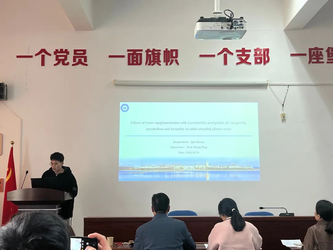 邱浩宇的研究课题集中在鱼源性益生菌的益生效应上,旨在揭示鱼源性益生菌如何通过调节斑马鱼的肠道微生物群和代谢物,进而影响其生长、免疫和整体健康。面对挑战,邱浩宇从未抱怨,而是不断的尝试和努力。他认真对待每一个实验数据,仔细分析每一个研究结果,克服一个又一个难题,力求做到准确无误。在学术研究的道路上,邱浩宇始终秉持严谨的治学态度,保持勤奋的钻研精神。他深知,每一个学术成果都离不开扎实的基础和深入的研究。他是实验室深夜的常客,实验室灯光下经常见到邱浩宇查阅资料、分析实验数据的身影。“我想把更多的精力投入科研,全力以赴地做好我喜欢的事。”提及专业,邱浩宇眼中有光。为了更好地进行科研工作,邱浩宇积极参与各种学术交流活动。他不仅参加了学校组织的学术讲座和研讨会,还主动参加了国内外知名的学术会议。