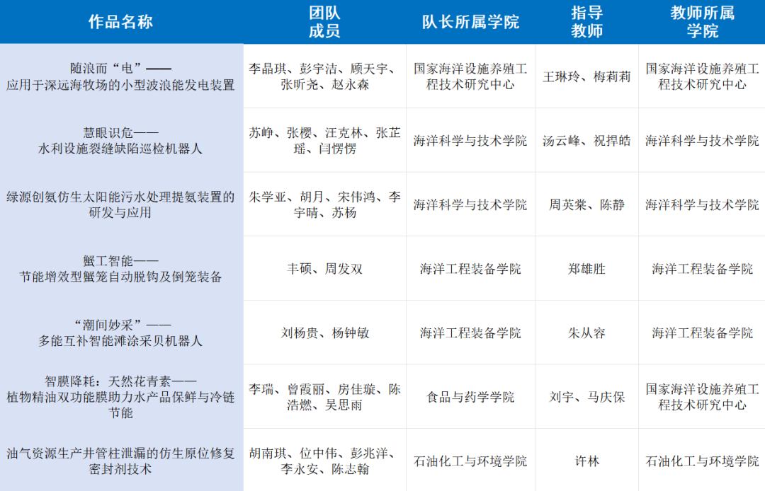 此次浙江海洋大学的参赛阵容涵盖多个优势学科领域,共有来自海洋科学与技术学院、水产学院、食品与药学学院、船舶与海运学院、海洋工程装备学院、石油化工与环境学院、国家海洋设施养殖工程技术研究中心等7个学院的26个项目团队参与角逐,35名研究生和11名指导教师参加决赛,体现出学校在能源装备相关方向的学科交叉与集成创新优势。