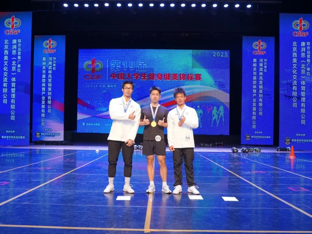 与此同时,在第19届中国大学生健身健美锦标赛中,学校健身健美队再传捷报。在教练员李继军的带领下,海洋工程装备学院郑江恒同学夺得普通本科组男子健身体能冠军,其他队员也发挥出色,取得多项优异成绩。