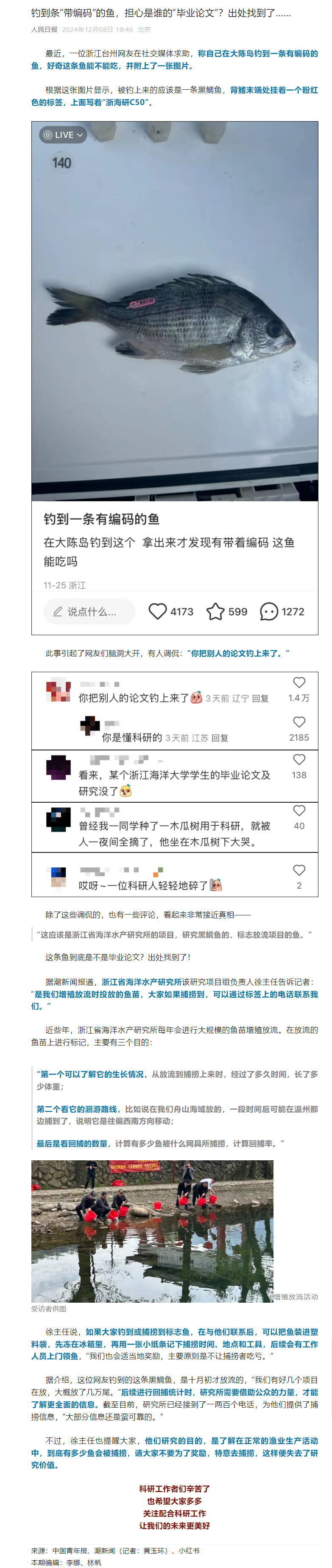 此事引起了网友们脑洞大开,有人调侃:“你把别人的论文钓上来了。”