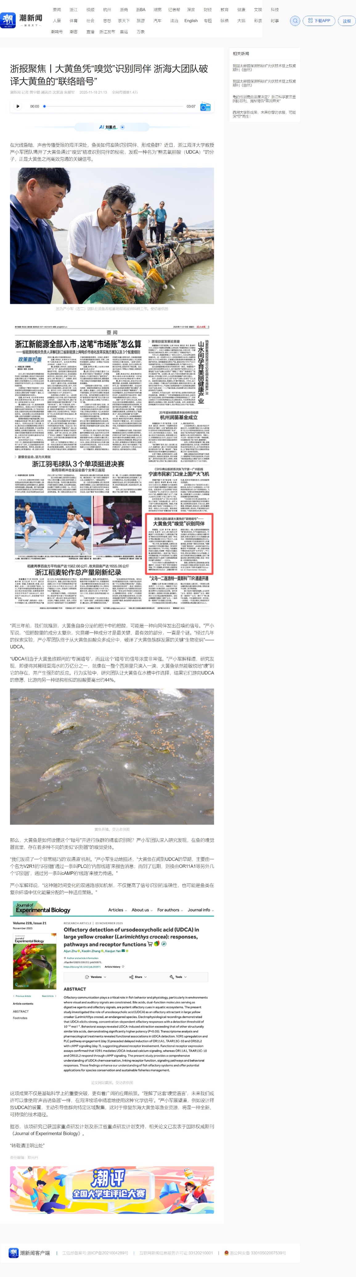 据悉,该项研究已获国家重点研发计划及浙江省重点研发计划支持,相关论文已发表于国际权威期刊《Journal of Experimental Biology》。