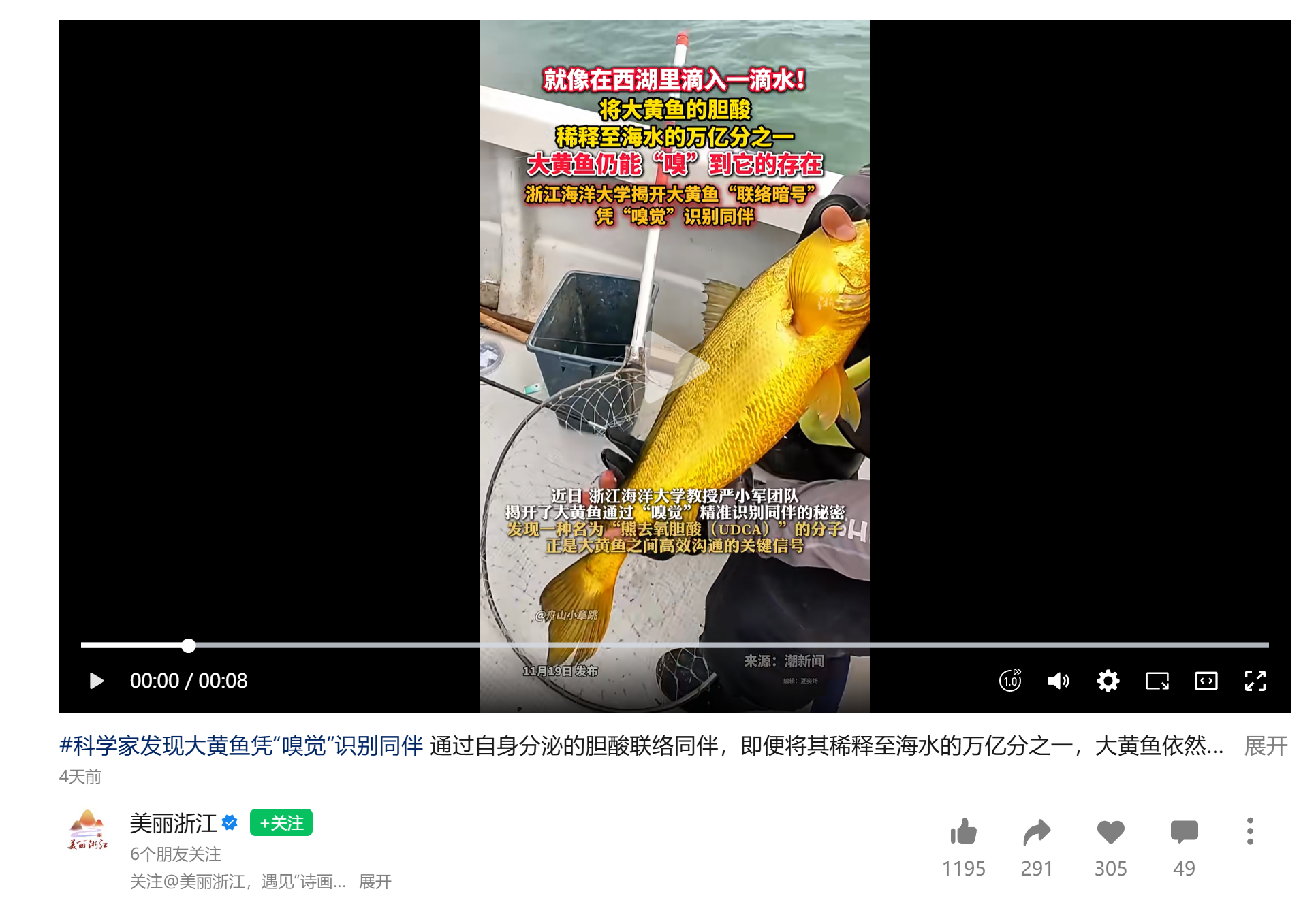 通过自身分泌的胆酸联络同伴,即便将其稀释至海水的万亿分之一,大黄鱼依然能敏锐地“嗅”到它的存在!