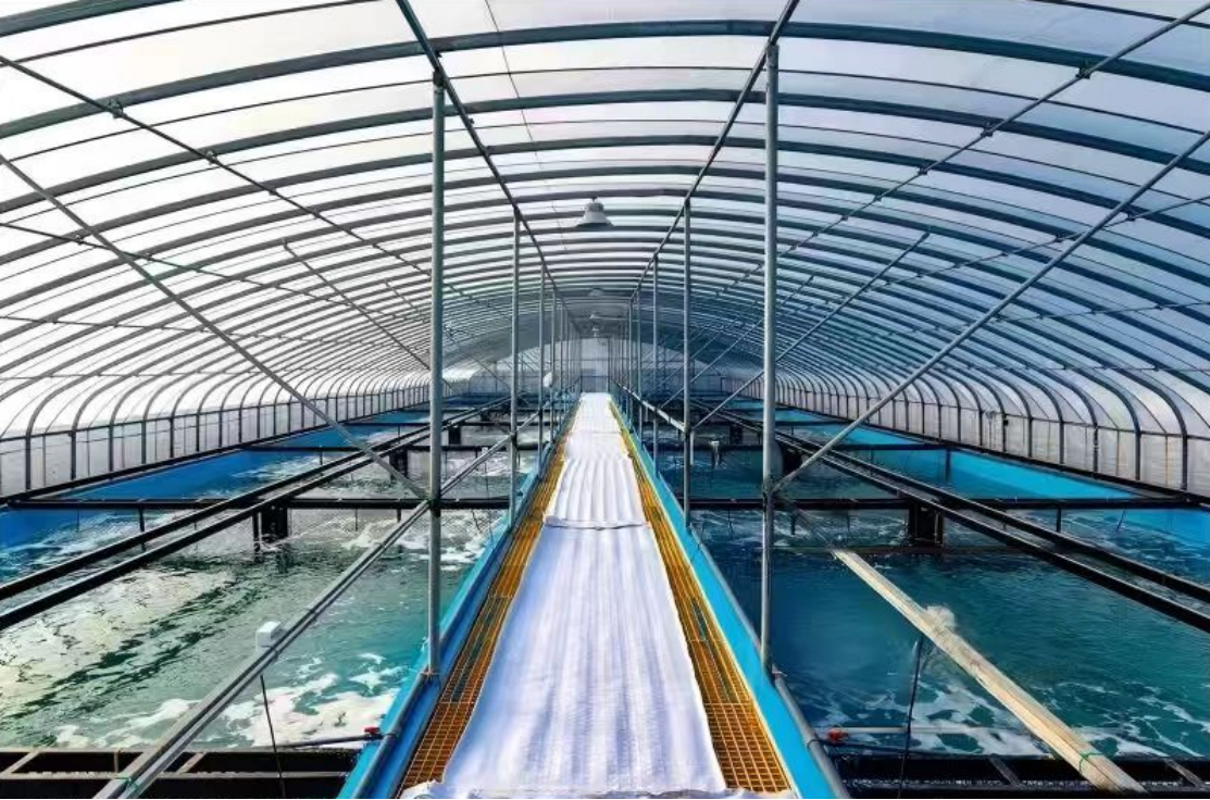 水质与水温,是这套系统的另外两大核心。呈“V”字形倾斜的池底,让残饵粪便自动聚拢,配合水面上巡逻的智能吸污小车精准排污,确保鱼群始终畅游在清澈的活水中。而在对抗严寒方面,经“热泵”系统将水温稳稳锁定在12℃至15℃。这套零排放的“双保险”系统比传统锅炉节能一半以上,为大黄鱼构筑起温暖的越冬防线。