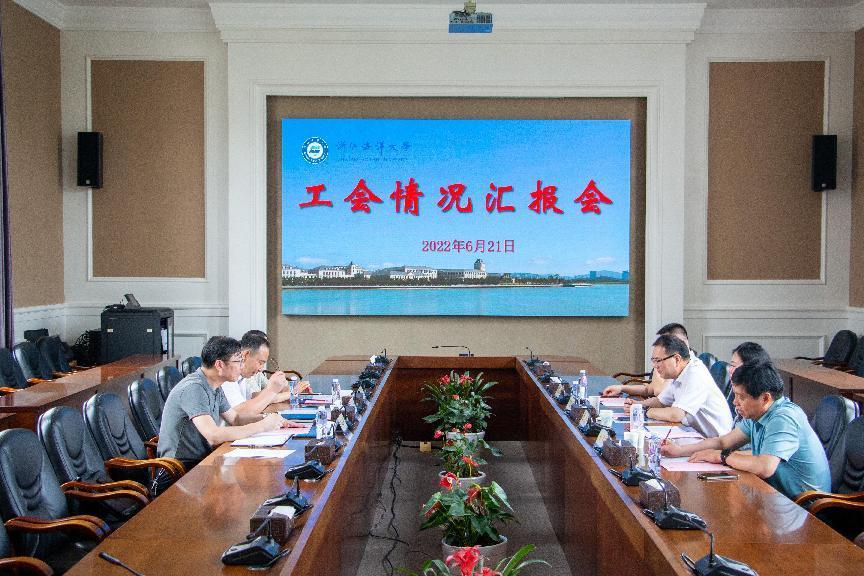 6月21日上午,浙江省总工会二级巡视员、省教育工会主席王玉庆,省教育工会副主席李茜、组织建设部部长郑喆,舟山市教育工会副主席刘伟一行来校走访调研。校党委副书记、工会主席王捷,纪委书记汤书明等陪同调研。