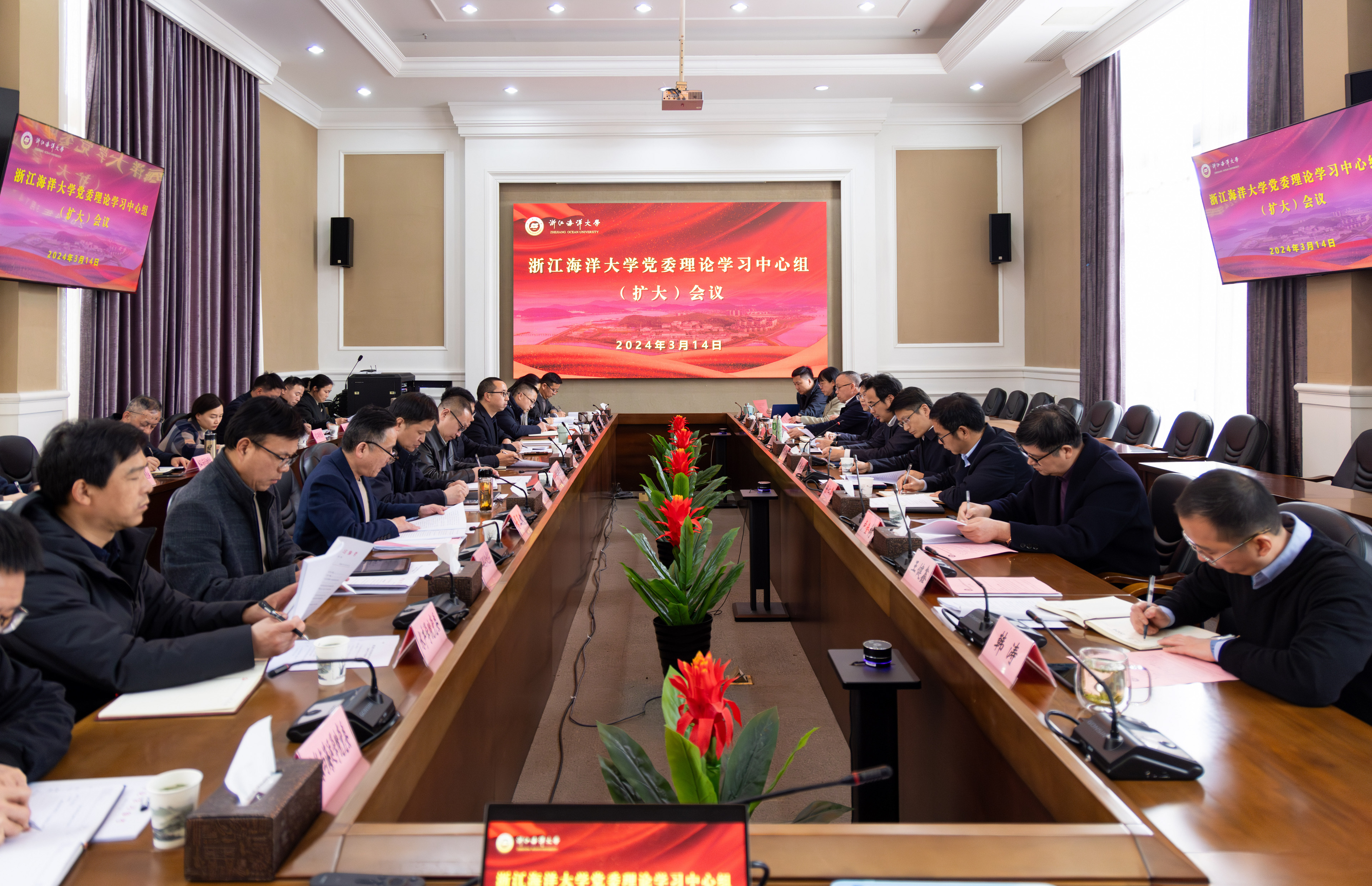 3月14日下午,浙江海洋大学召开党委理论学习中心组(扩大)会议,传达学习习近平总书记在全国两会期间的重要讲话精神和全国两会精神,对学习贯彻作出工作部署。会议强调要深入学习贯彻全国两会精神,集中力量攻坚申博“一号工程”,谋划海洋新质生产力卓越创新中心,持续激发和增强海洋经济新动能,书写好以一流海洋大学建设服务浙江海洋强省的新篇章。