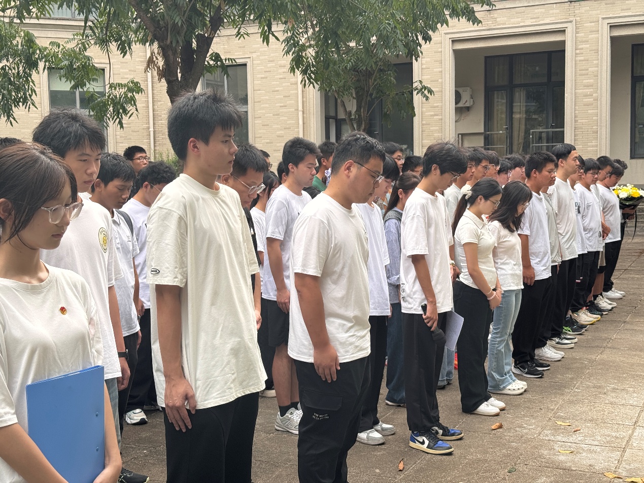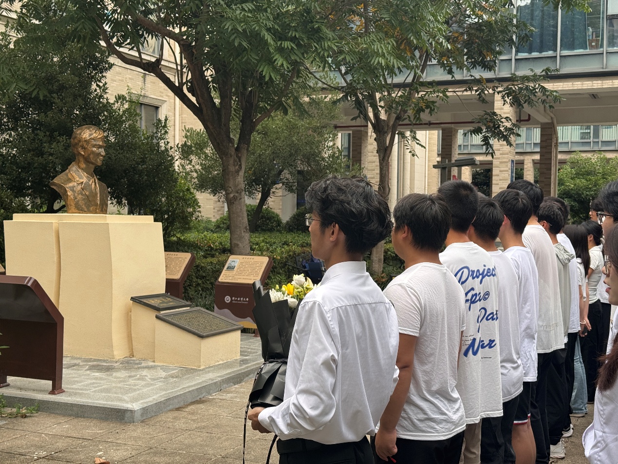随后,学生代表恭敬地向烈士像敬献鲜花,伴随着《献花曲》的庄严旋律,全体人员再次鞠躬致敬,将先烈精神深深铭刻于心。