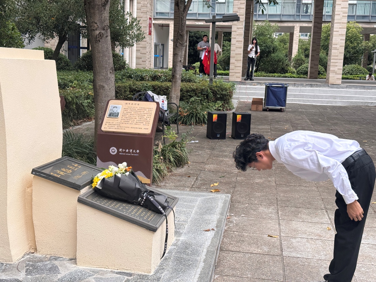 9月30日是国家设立的烈士纪念日。为深切缅怀革命先烈的丰功伟绩,弘扬爱国主义精神,引导广大青年学生传承红色基因、担当时代重任,浙江海洋大学在王成海烈士像前庄严举行“承英烈遗志,擎时代新责”主题祭扫活动,近百名师生代表参加。