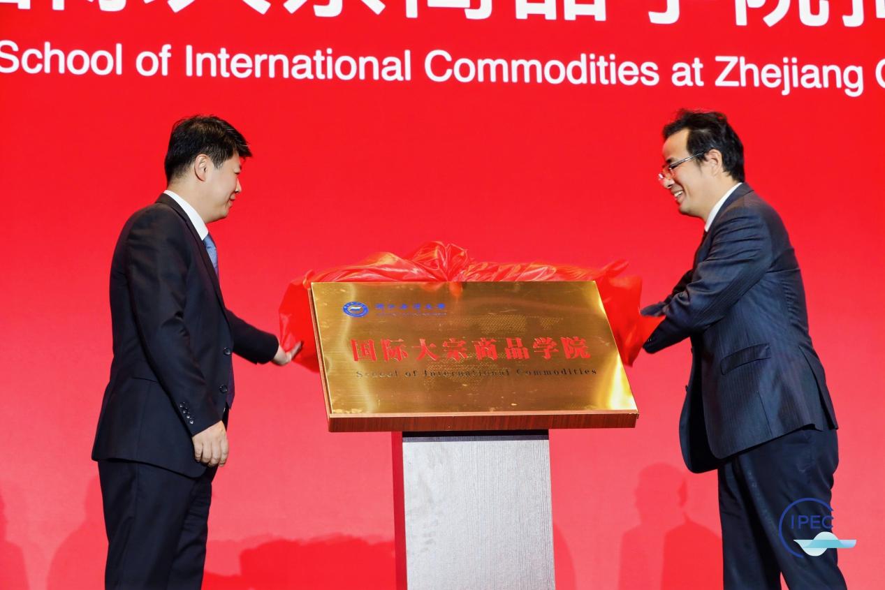 浙江海洋大学党委书记严小军,舟山市委副书记、教育工委书记梁雪冬为国际大宗商品学院揭牌,浙江省教育厅二级巡视员吕华、浙江省商务厅二级巡视员梁志良参加揭牌仪式。