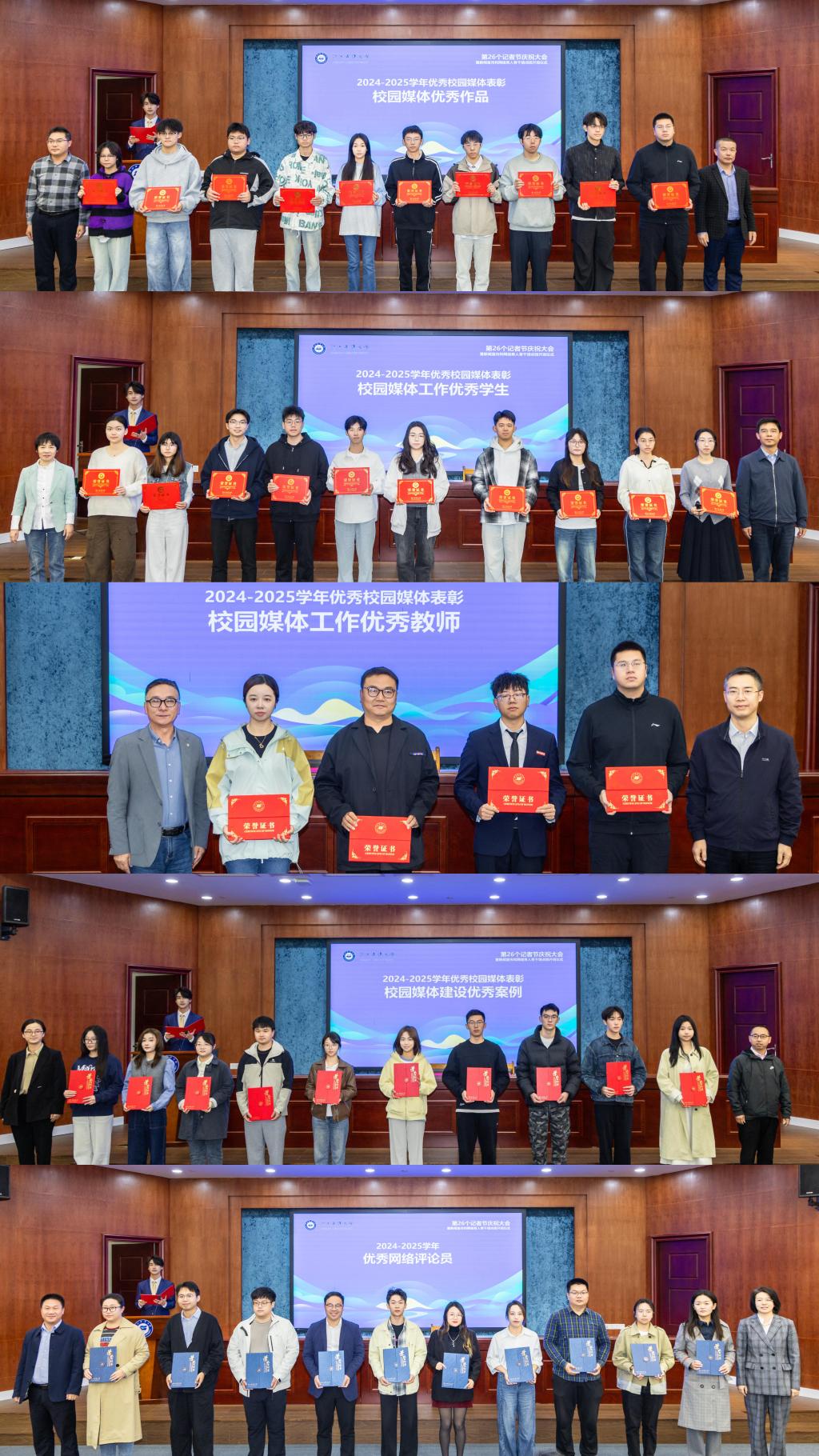 会议还对2024-2025学年校园媒体建设优秀案例、优秀教师、优秀学生、优秀作品及优秀网络评论员进行了表彰。