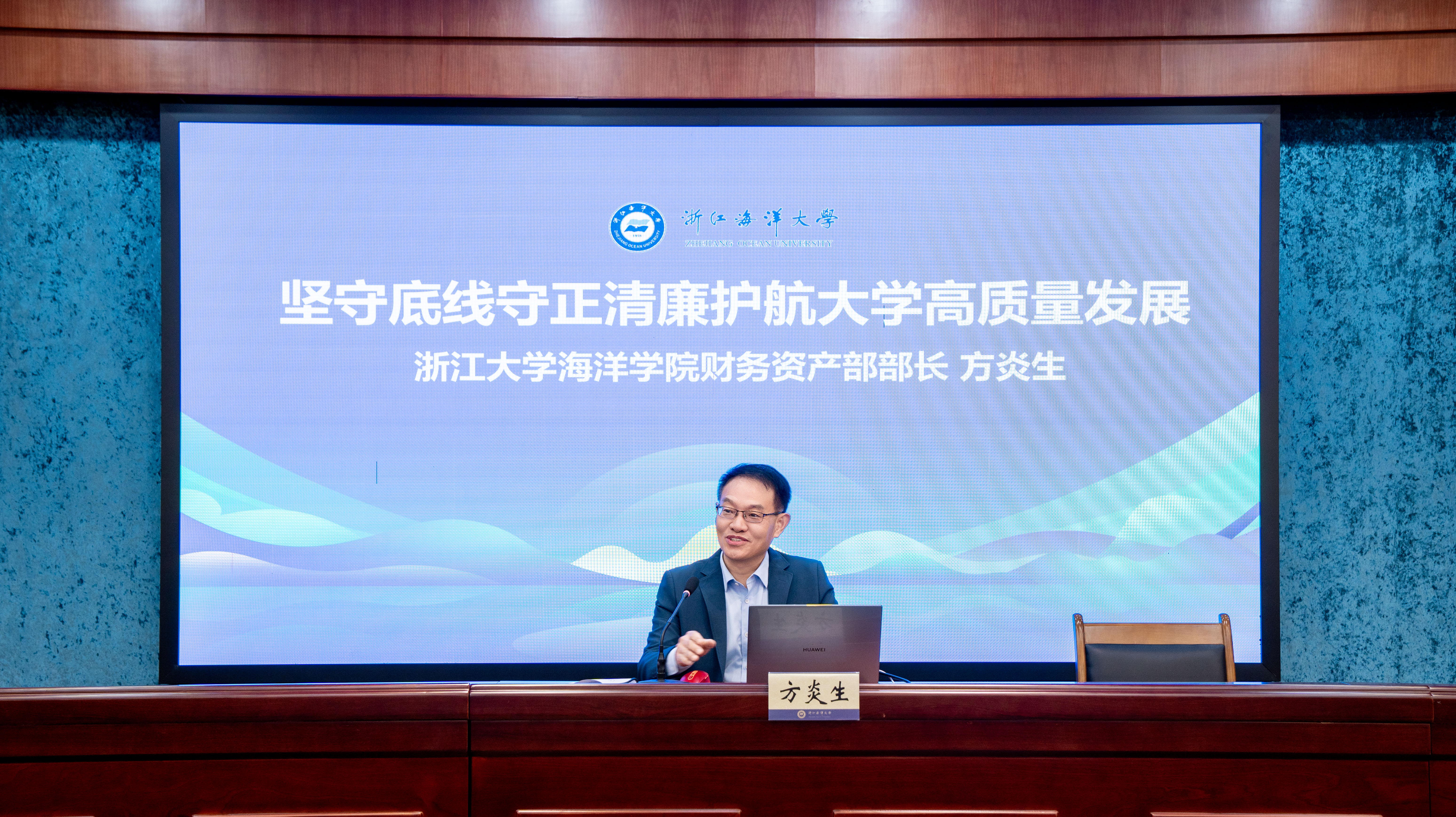 庆祝大会结束后,紧接而来的新闻宣传与网络育人骨干培训班随即开班。浙江大学海洋学院财务资产部部长方炎生作《坚守底线 守正清廉 护航大学高质量发展》主题讲座。后续培训还将邀请专家围绕舆情引导、新闻采写等方面开展专题授课。