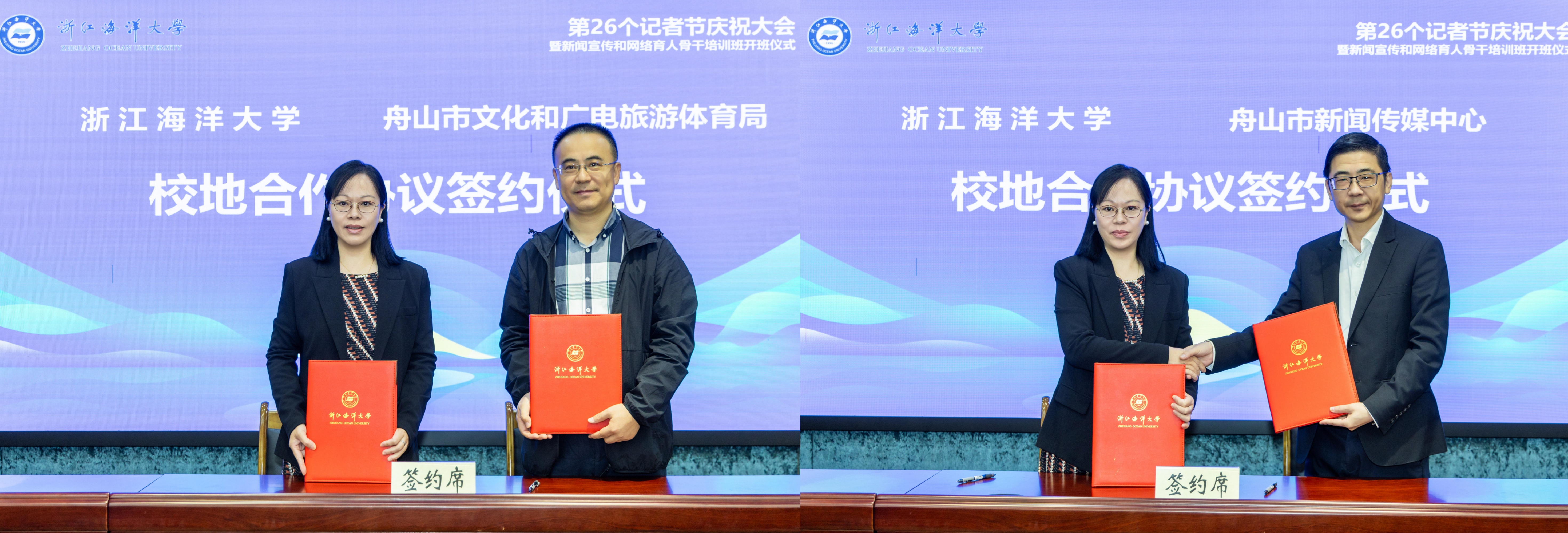 大会现场,王剑俊与刘雨业共同为“舟山市新闻传媒中心—浙江海洋大学融媒体工作站”揭牌。林静分别与张辉、刘雨业签署校地文化战略合作协议与校地宣传战略合作协议,标志着校地在文化共融、宣传共建方面迈出关键一步。根据协议,双方将在文化项目共创、人才联合培养、融媒体内容生产等方面开展深度合作。