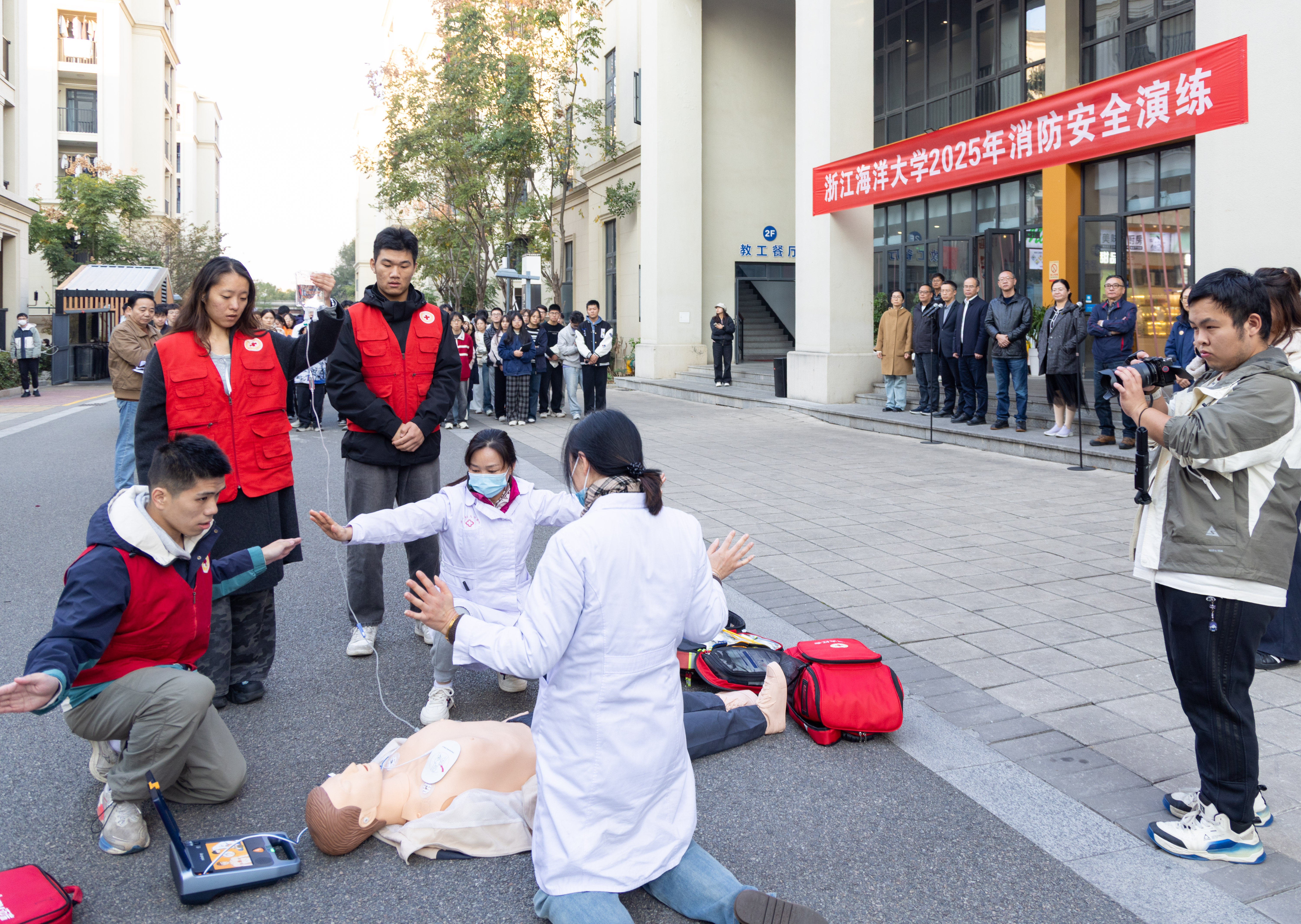 11月20日下午,浙江海洋大学在新城校区举行2025年消防应急疏散演练活动。浙江海洋大学副校长吴高峰出席活动并讲话。
